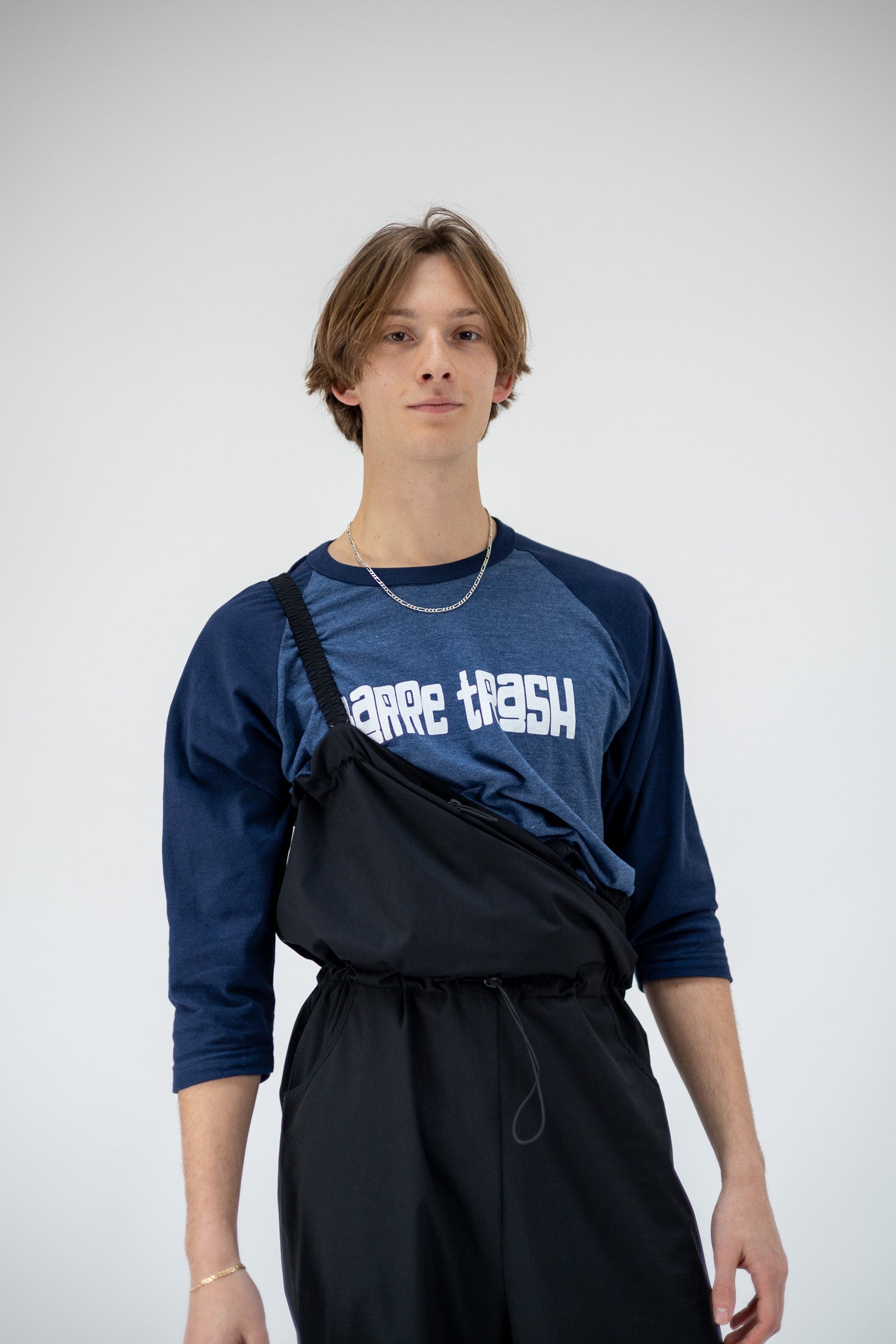 Elastic at the ankle, Drawstrings at the waist and chest.