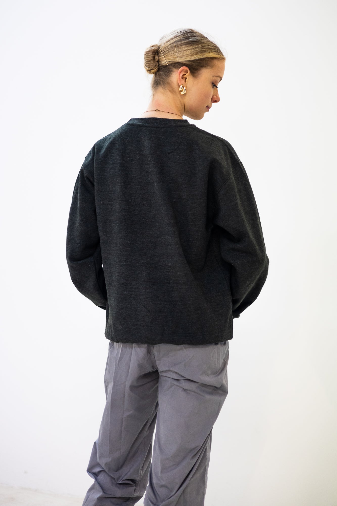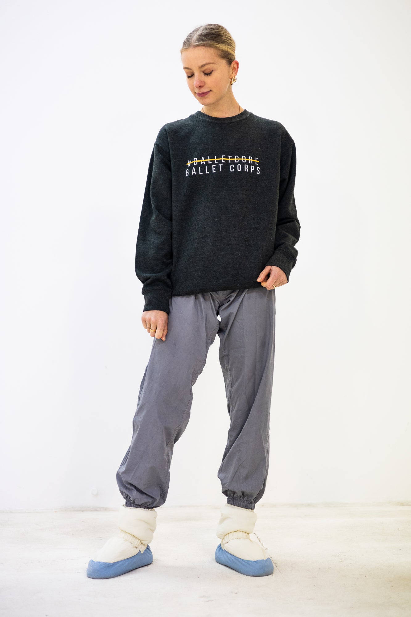 Old-school sweatshirt silhouette with ribbed crew neck, long sleeve cuffs, and a flat hem. Pair it with the sweatpants for a tracksuit vibe.
