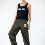Our warmup pants are made of thick, stretchy, durable fabric. Coated inside with a navy blue sauna lining, they are guaranteed to make you sweat and keep you warm. Stretchy enough for grand plies, they are designed to be OVERSIZED. Meaning they are LONG.